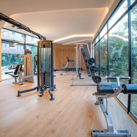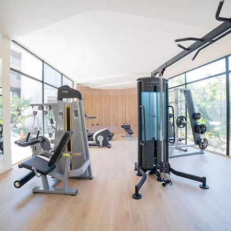 Boendet har ett utrustat kök, utrustat med kylskåp, brödrost och glas. Den här lägenheten ger också gästerna tillgång till ett fitnesscenter, så att de kan fokusera på sitt fysiska välbefinnande.